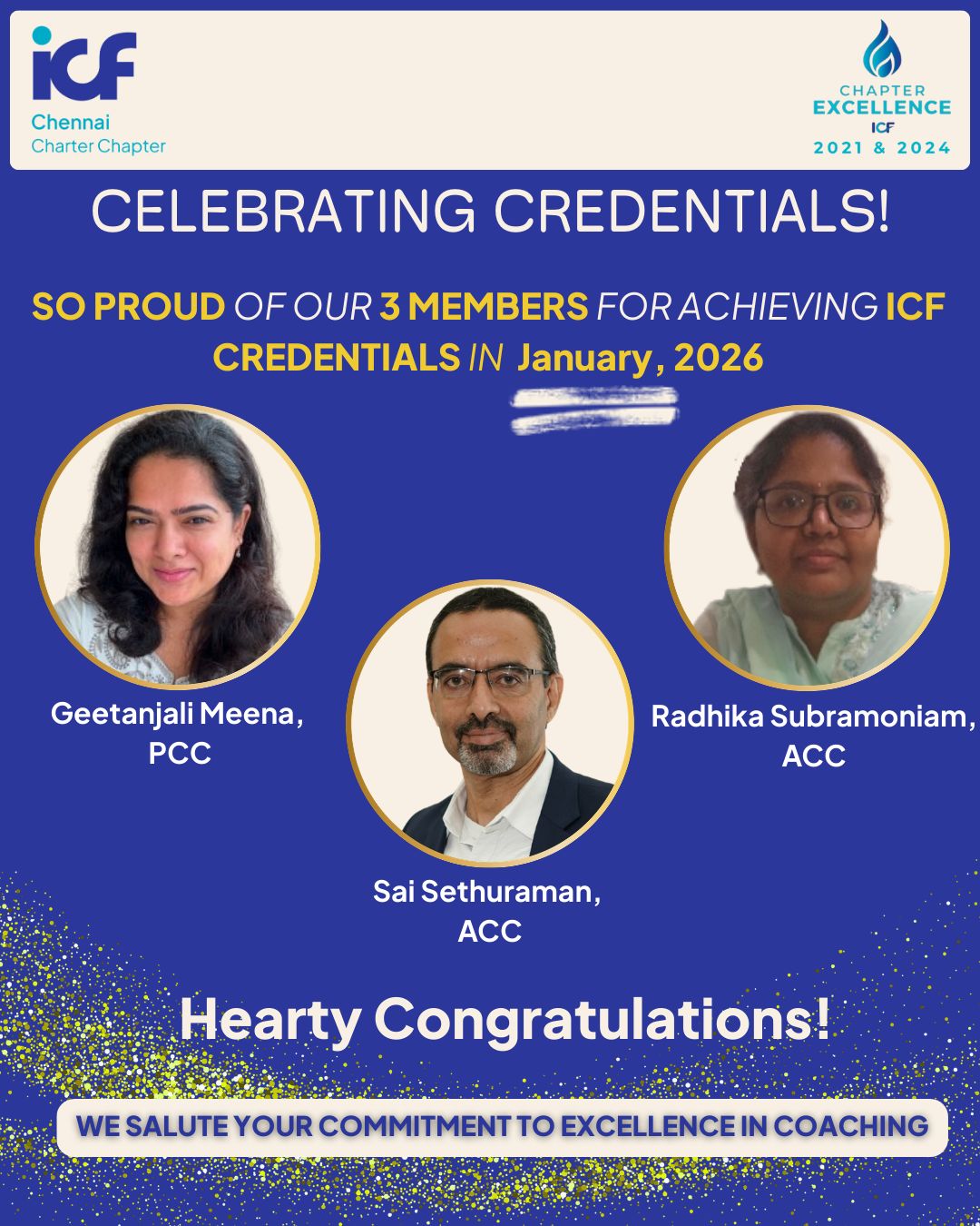 Every month, this feature captures the Coaches, who got their ICF Credentials namely – ACC/PCC/MCC the month before. For example, March 2021, will capture the details of Coaches who got their ICF Credentials in the month of February 2021.