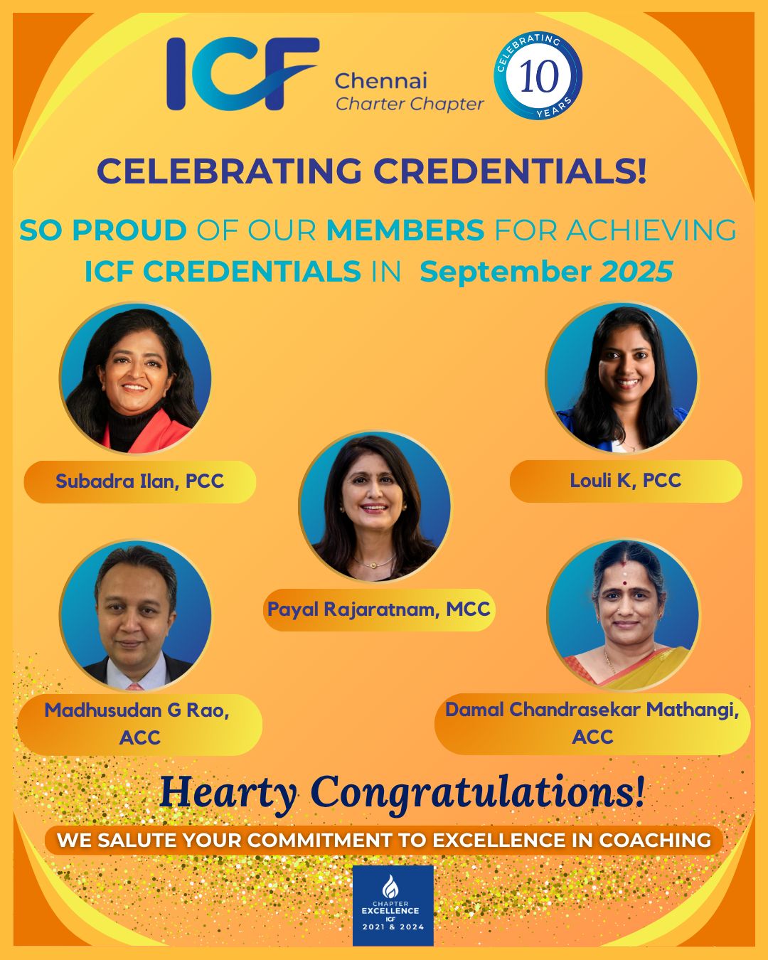 Every month, this feature captures the Coaches, who got their ICF Credentials namely – ACC/PCC/MCC the month before. For example, March 2021, will capture the details of Coaches who got their ICF Credentials in the month of February 2021.
